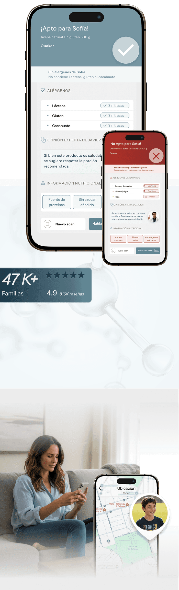 Escanea alimentos y cosméticos y recibe alertas claras y personalizadas.